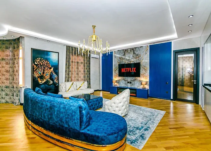 Located 950 metres from Baku railway station, the spacious Vip Apartment Leopard Baku is 9 minutes' walk from the Posh Fountain Public Square. Standing 2.3 km from the Azerbaijan National Carpet Museum, this apartment features outdoor furniture on a terrace.